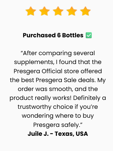 Another crucial point in 2025 is safety. While many formulas include questionable additives, Presgera focuses on well-studied, well-tolerated ingredients, giving users confidence for long-term use. And the extended guarantee shows how much the company believes in what it offers — and honestly, after using it myself, I understand why.